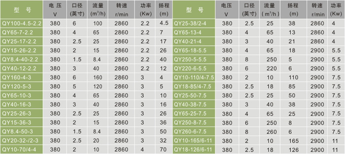 QY 型充油式潛水電泵是水泵和三相異步電動(dòng)機(jī)合成一體的電力排灌設(shè)備。具有可靠的防水密封性能,體積小,重量輕,不需泵房,不需灌引水,使用維護(hù)及管理方便。